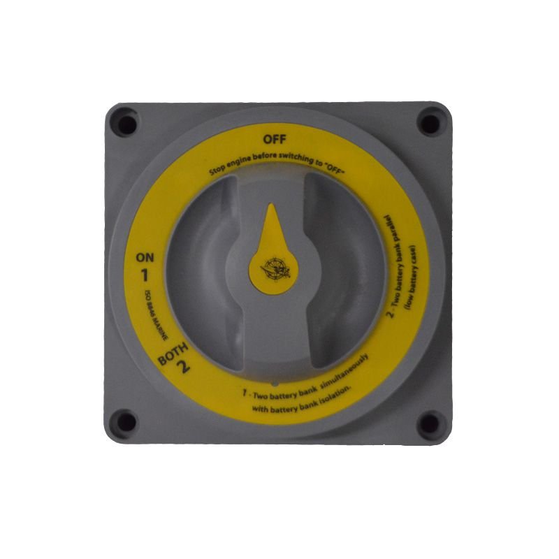 Μπορεί να χρησιμοποιήσει τις μπαταρίες του σκάφους εναλλακτικά ή ταυτόχρονα. Είναι εφοδιασμένος με χάλκινες επαφές, ελατήρια από ανοξείδωτο ατσάλι, PC / PTB / Fiberglass πυρίμαχη θήκη, έχει προστατευτική βάση καλωδίων και επιπλέον χωνευτό δαχτυλίδι-παξιμάδι διαμέτρου 95 χιλιοστών. Στη θέση 1 η μπαταρία εκκίνησης και η μπαταρία του ηλεκτρικού κυκλώματος του σκάφους δουλεύουν ξεχωριστά. Τα δύο κυκλώματα συνδέονται και οι μπαταρίες χρησιμοποιούνται παράλληλα στη θέση 2. Έχει έγκριση ISO 8846 MARINE EN 28846.