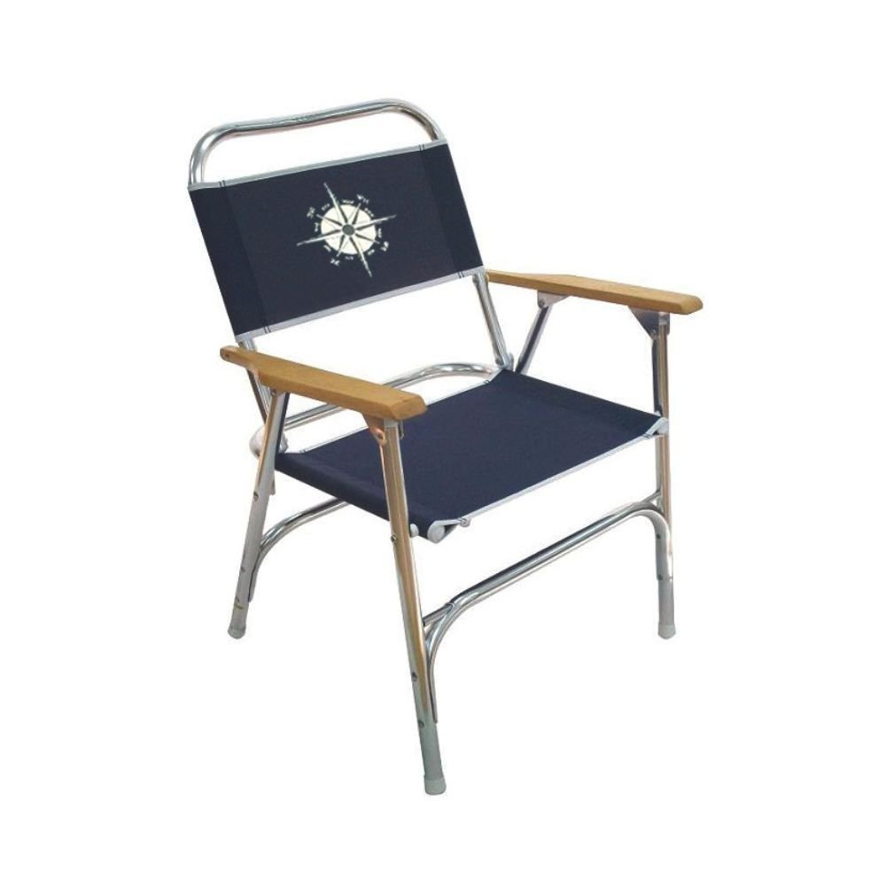 Κομψή και εργονομική αναδιπλούμενη καρέκλα, κατασκευασμένη από πολυέστερ 600 denier σε μπλε χρώμα. Σκελετός από σωλήνα ανοδιωμένου αλουμινίου διαμέτρου 25mm και ξύλο στα μπράτσα.