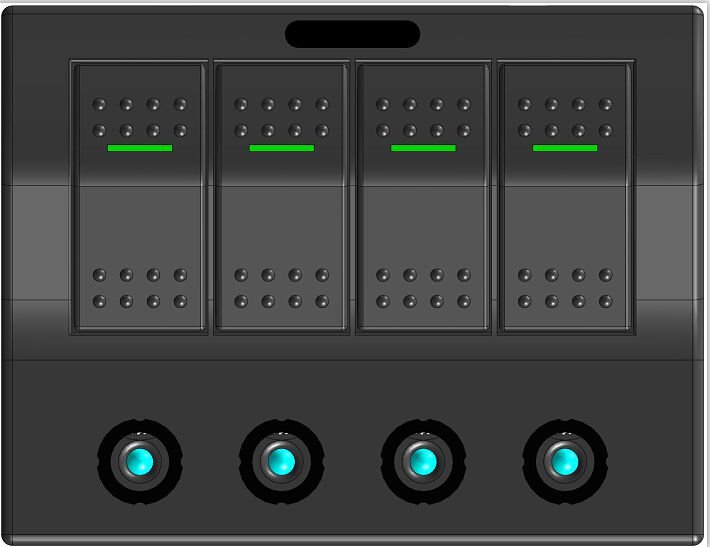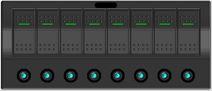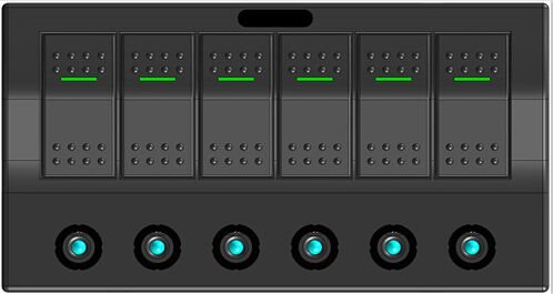 12V/24V. PCB and LED. With one switch (ON)-OFF and 7 switches ON-OFF. Push Button Circuit Breakers. Waterproof IP68.