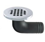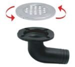 Γωνιακή οικονομική αποχέτευση 90o νάιλον με Inox αφαιρούμενο καπάκι για το καθαρισμό της και υποδοχή για βίδες στη βάση της αποχέτευσης για μεγαλύτερη ασφάλεια.